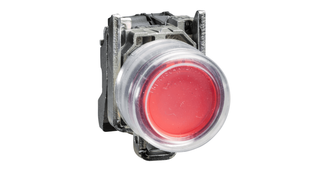 Pulsante Schneider Electric, SPST, montaggio a pannello, diametro 22 mm, colore rosso, grado di protezione IP66 e IP67, resistenza a temperature da -25 a +70 gradi Celsius, certificazione ATEX, contatti a lenta interruzione, cornice in metallo cromato, 1.000.000 cicli di durata meccanica, conforme a EN/IEC 60947-5-1, UL 508 e CSA C22.2 N. 14. Codice costruttore XB4BP42EX.