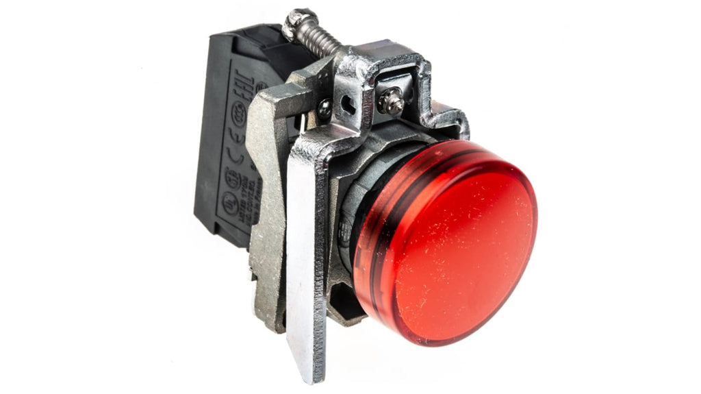 Spia LED montaggio a pannello, diametro foro 22mm, protezione IP66, IP67, IP69(IP69K), tensione nominale 240V ca, colore rosso, corpo metallico, tipo terminale a vite, serie Harmony XB4. Resistenza alle vibrazioni, protezione dagli urti IK06, temperatura d'esercizio da -40 a 70 gradi Celsius, conforme a standard IEC, UL, CSA, CCC, EAC, JIS, certificato ATEX. Adatta per applicazioni industriali e commerciali.