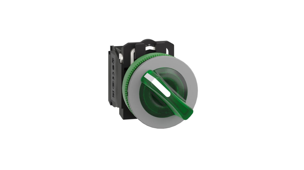 Selettore illuminato a 2 posizioni, diametro foro 30.5 mm, con cornice grigia e pulsante verde, montaggio a filo. Meccanismo di fermo, 1 contatto normalmente aperto e 1 contatto normalmente chiuso, senza mercurio. Grado di protezione IP66 e IP67, durata meccanica 1000000 cicli, conforme a RoHS. Marca: Schneider Electric, codice costruttore: XB5FK123B5C0.