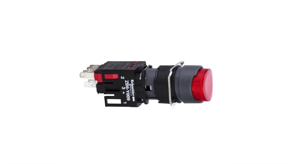 Pulsante luminoso a LED integrato, configurazione contatto SPST, montaggio a pannello, diametro foratura 16mm, colore rosso, protezione IP65, massima tensione c.a. 240V, tensione massima c.c. 250V, tipo terminale attacco rapido, temperatura operativa da -25°C a +70°C. Serie Harmony XB6, codice produttore XB6AE4B2B.