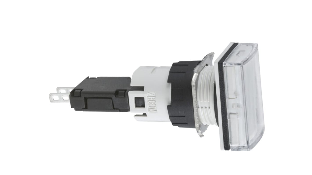 Luce pilota completa con LED, tensione nominale 12-24 V c.a./c.c. o 120 V c.a., colore bianco, diametro foro 16 mm, montaggio a pannello, profondità dietro al pannello 41,5 mm, grado di protezione IP65, attacco rapido, corrente nominale 15 mA, corpo in plastica, serie Harmony XB6.