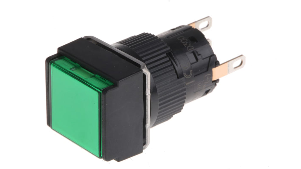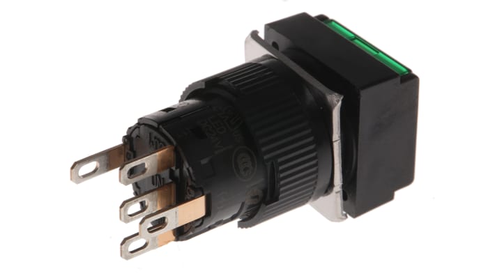 Pulsante luminoso a ritorno a molla, SPDT, montaggio a pannello, serie Harmony XB6 di Schneider Electric. Tensione nominale 24V cc, corrente nominale 1.5A, grado di protezione IP65. Materiale cornice in plastica, contatti in argento placcato oro. Diametro foratura pannello 16mm, temperatura operativa da -40 a +70 gradi Celsius. LED integrato per indicazione stato, attacco rapido per connessione. Codice produttore XB6ECW3B1P.