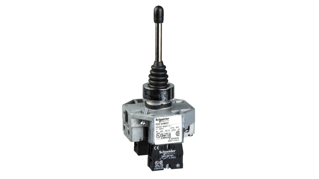 Pulsante DPST montaggio a pannello, serie Harmony XD2, diametro foratura 22 mm, colore cromo, materiale metallico, protezione IP66, temperatura operativa da -25 a +70 gradi Celsius, tensione massima c.c. 250V, massima tensione c.a. 240V, tipo terminale a vite, configurazione contatto DPST, impugnatura in gomma, cornice in metallo cromato, codice produttore XD2GA8451.