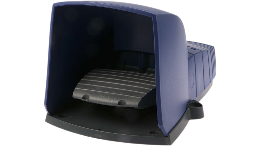 Interruttore a pedale, Schneider Electric, Instabile On-Off, IP66, SPDT. Materiale plastico, colore blu, dimensioni L282 x H154 x W141mm. Tensione nominale contatto AC 240V, DC 250V, corrente nominale 270 mA a 250V c.c., 3A a 240V c.a. Meccanismo di attivazione in metallo, copertura di protezione in metallo disponibile, durata meccanica fino a 10000000 cicli. Ideale per impieghi industriali. Codice costruttore XPEB310.
