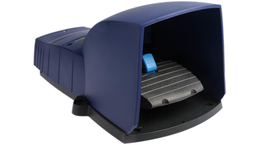 Interruttore a pedale, Schneider Electric, Instabile On-Off, IP66, 1 NA/1 NC, meccanismo di attivazione in metallo, coperchio di protezione in metallo, blocco meccanico per attivazione sicura, tensione nominale contatto AC 240V, DC 250V, corrente nominale 270 mA a 250 V c.c., 3 A a 240 V c.a., dimensioni 141mm x 282mm, impieghi industriali. Codice costruttore: XPEB510.