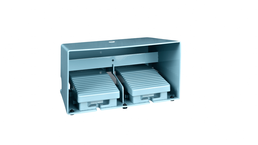 Interruttore a pedale doppio Schneider Electric, 2NO + 3NC, IP66, montaggio su cavo, struttura in metallo, coperchio blu, meccanismo di attivazione, apertura positiva per sicurezza, terminali a vite per installazione facile, durata meccanica di 15000000 cicli, serie Harmony XPE, codice produttore XPEM6210D.