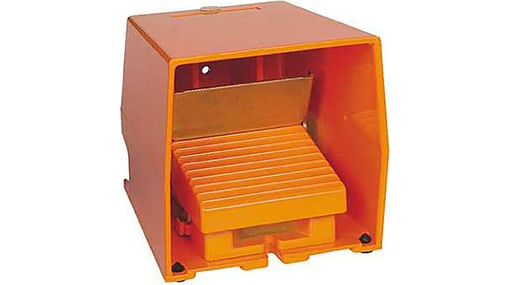 Interruttore a pedale, Schneider Electric, Instabile On-Off, IP66, 2NO/2NC, serie Harmony XPE, materiale telaio in metallo, tensione nominale contatto AC 240V, tensione nominale contatto DC 250V, corrente nominale contatto 270 mA a 250 V c.c., 3 A a 240 V c.a., copertura di protezione inclusa, impieghi industriali, approvazioni U/CSA. Fissabile al pavimento o su supporto per maggiore stabilità.