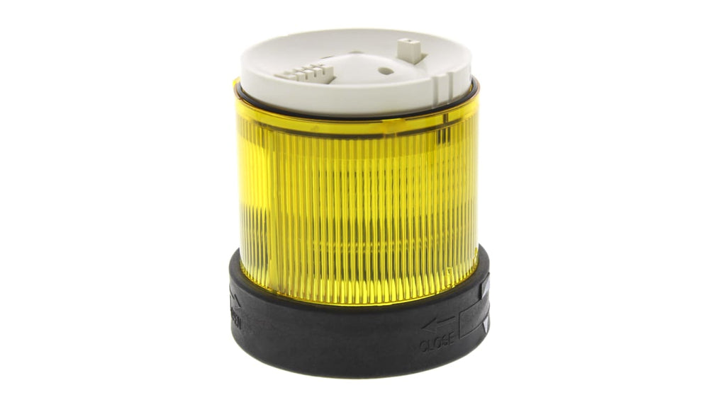 Segnalatore luminoso modulare Schneider Electric, serie XVBC, giallo, 24 V c.a. / c.c., IP66, altezza 63 mm, diametro base 70 mm. Tecnologia LED, 100.000 ore di illuminazione, temperatura operativa -25 a +50 °C. Connettore rimovibile, montaggio semplice, disponibile in vari colori e configurazioni. Certificazioni CE, UL, CCC, CSA. Lampadine e accessori da ordinare separatamente.