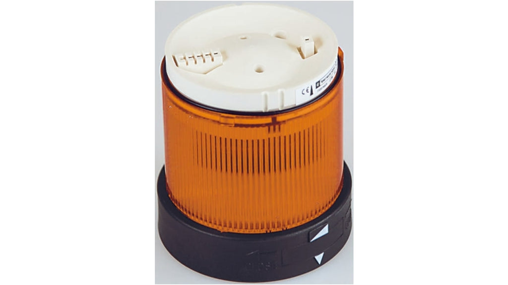 Segnalatore luminoso modulare Schneider Electric, Ambra, 24 V c.a. / c.c., IP66, serie XVBC Harmony. Altezza 63 mm, diametro base 70 mm, temperatura operativa -25 a +50 gradi. Disponibile con lampadine a incandescenza o LED, con connettore rimovibile e anello di bloccaggio. Segnalazione a lunga distanza fino a 50 m. Certificazioni CE, UL, CCC, CSA.