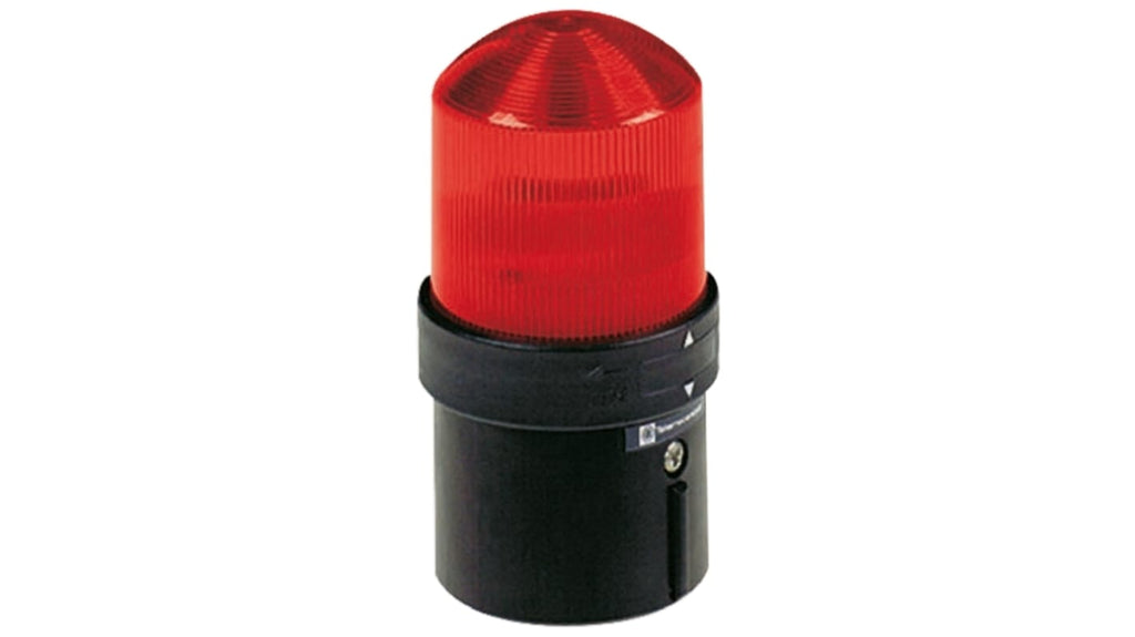 Segnalatore fisso Schneider Electric, tensione 250 V, luce rossa, tipo a incandescenza o LED, montaggio su base, diametro base 70 mm, altezza 139 mm, grado di protezione IP65, temperatura operativa da -25 a +50 gradi Celsius, realizzato in policarbonato, per uso interno, conforme a standard EN/IEC 60947-5-1, CSA C22-2 n.14, UL 508, CCC, GOST. Lampada non inclusa.