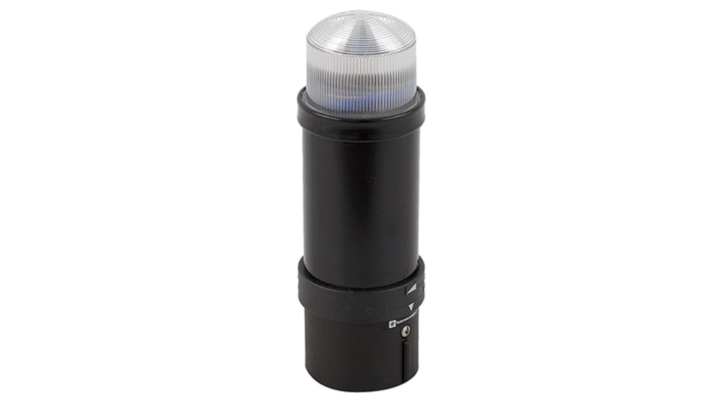 Segnalatore lampeggiante a scarica di Schneider Electric, tensione 24 V ca/cc, effetto luce lampeggiante, lente trasparente, montaggio su base, lampada inclusa, grado di protezione IP65, realizzato in policarbonato, diametro base 70 mm, altezza 139 mm, colore custodia nero, serie XVBL, conforme a standard EN/IEC 60947-5-1, autorizzato CSA C22-2 no14, UL 508, CCC, GOST.