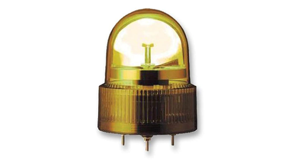 Segnalatore rotante a LED ambra, tensione di alimentazione 24 V ca/cc, effetto luce rotante, montaggio su base, LED ultraluminosi, protezione IP66, diametro base 120 mm, colore custodia verde, lampada inclusa, conforme RoHS, standard EN 61000-6-2, EN 61000-6-4, classe II secondo IEC 61140, autorizzazioni CE, UR, UL. Serie XVR.
