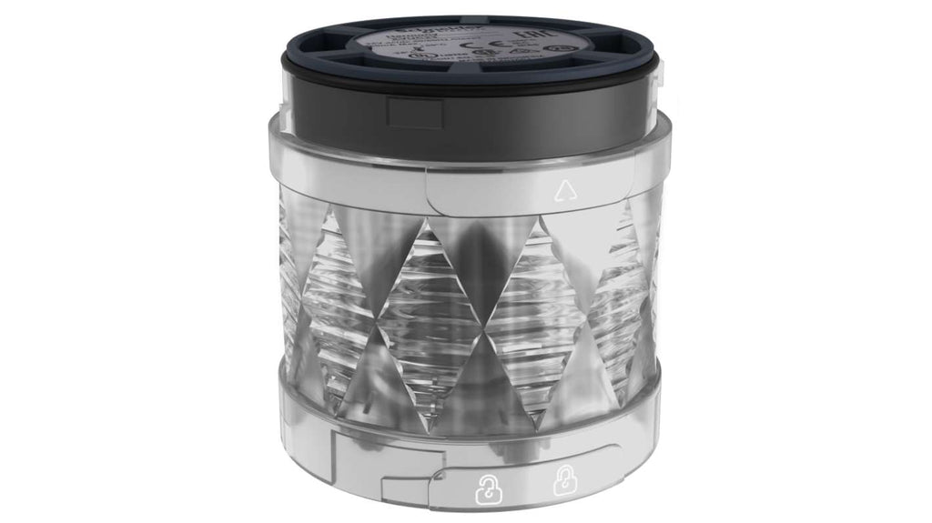 Segnalatore luminoso modulare Schneider Electric, serie Harmony XVU, tensione 24 V c.a. / c.c., diametro base 60 mm, altezza 50 mm, grado di protezione IP65, temperatura operativa -25°C/+50°C, disponibile in sei colori (Blu, Verde, Arancione, Rosso, Bianco, Giallo), LED, funzioni lampeggiante, rotante e fisso, montaggio flessibile, configurazione personalizzabile tramite software, certificazioni CE, UL, CSA.