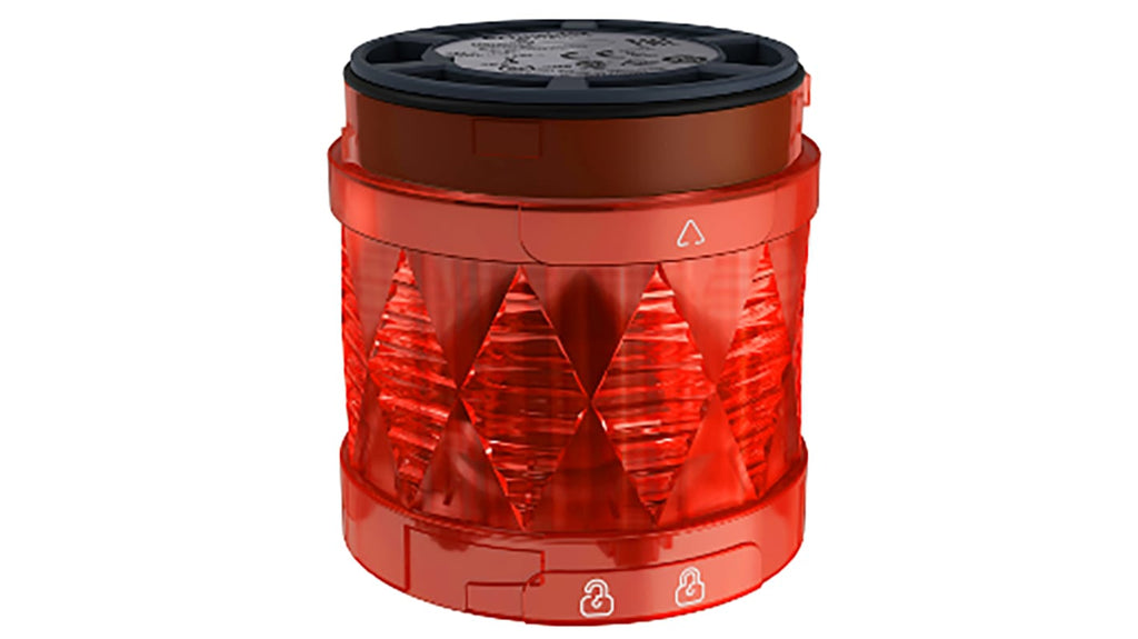 Colonna modulare luminosa, tipo LED, colore rosso, effetto luce lampeggiante, tensione di alimentazione 24 V ca/cc, grado di protezione IP65, temperatura operativa da -25 a +50 gradi Celsius, diametro base 60 mm, altezza 50 mm, lampada inclusa. Marchio Schneider Electric, serie Harmony XVU, codice costruttore XVUC44.