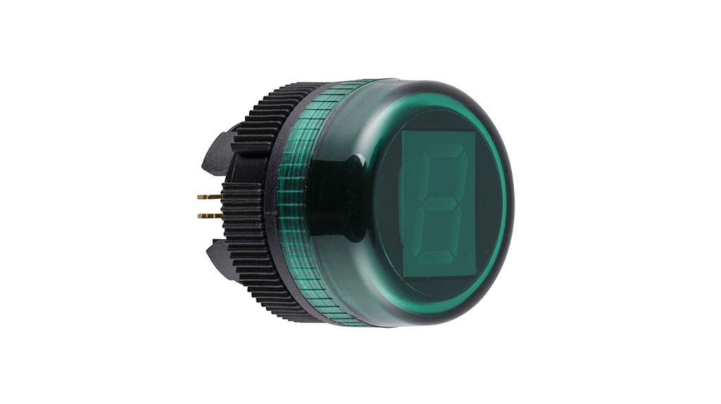 Testa del display digitale con diametro di montaggio di 22 mm, display a LED verde a 7 segmenti con punto decimale, grado di protezione IP65, progettata per resistere a polvere e acqua, prodotto sostenibile Green Premium, conforme RoHS, esente da metalli pesanti e mercurio, resistente a vibrazioni e urti, adatta per un'ampia gamma di temperature. Marchio: Schneider Electric, codice costruttore: ZA2VA03.