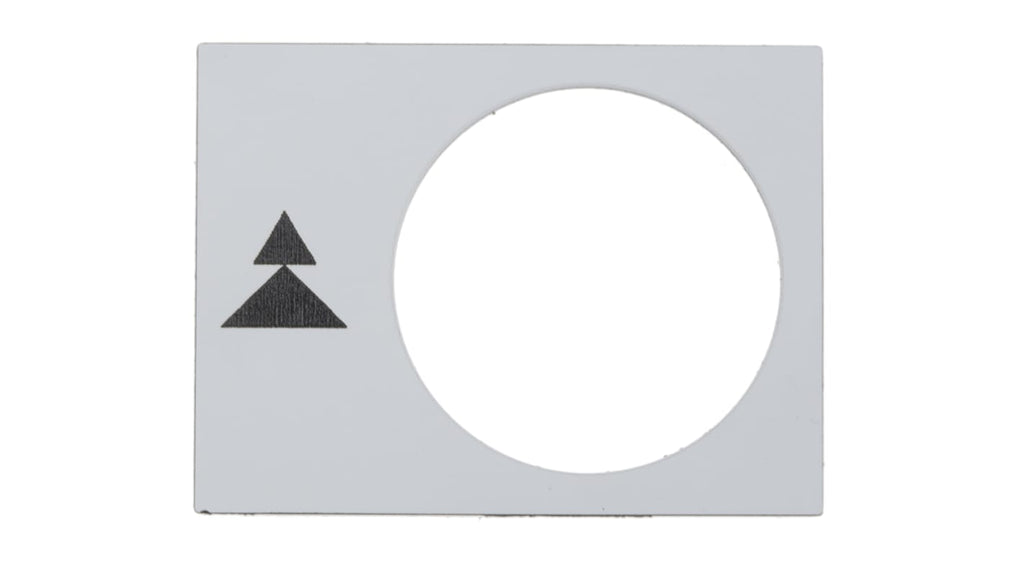 Etichette per stazioni di controllo con telecomando XAC A, dimensioni 30 x 40 mm, simboli conformi agli standard NF e 52-124, progettate per la serie XACA. Accessori specifici per identificazione e funzionalità dei comandi, inclusi simboli per sollevamento, lento-veloce e direzione. Marca: Schneider Electric, codice costruttore: ZB2BY4903.