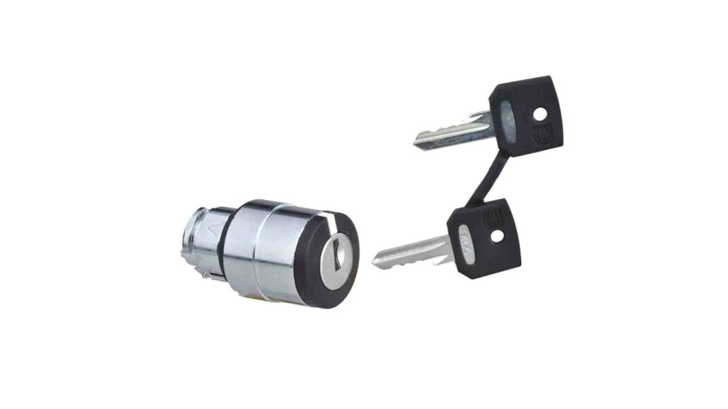 Testa selettore a chiave Schneider Electric serie ZB4, 3 posizioni, diametro foro 22 mm, attivazione stabile, protezione IP67 e IP69K, angolo di corsa 45 gradi, serratura tipo Ronis 455, meccanismo di ritenuta con estrazione della chiave sulla posizione corretta, colore nero, mercury free.