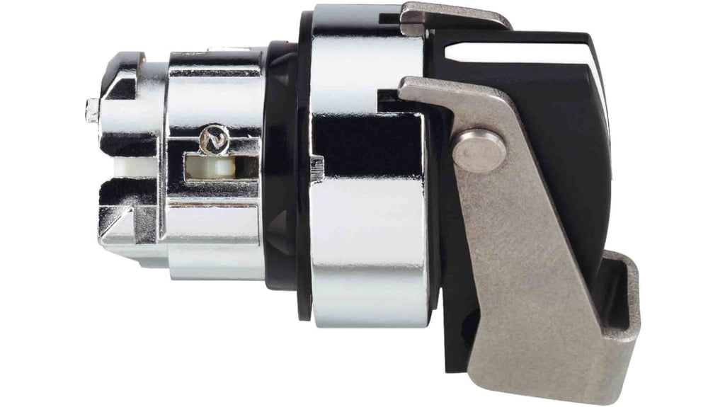 Testa selettore Schneider Electric, 3 posizioni, diametro 22mm, colore nero, materiale in metallo cromato, attivazione stabile, protezione contro il contatto accidentale, grado di protezione IP69, angolo di corsa 45°, serie ZB4.