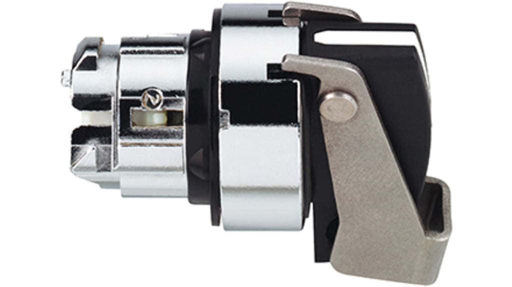 Selettore a tre posizioni Schneider Electric, testa Ø22mm, colore nero, attivazione con ritorno a molla, materiale in metallo cromato, grado di protezione IP67, serie XB4.