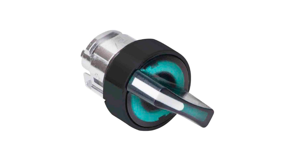 Testa selettore illuminata per LED integrato, 2 posizioni, diametro foro 22mm, attivazione stabile, serie ZB4, protezione IP67 e IP69K, angolo di corsa 90 gradi, impugnatura standard, mercury free. Prodotto da Schneider Electric. Codice costruttore ZB4BK12337.