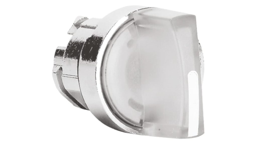 Teste selettori a 3 posizioni, diametro foro 22mm, impugnatura standard, ritorno a molla da sinistra verso il centro, LED illuminato. Colore attuatore bianco, protezione IP66, IP67, IP69, angolo di corsa 45 gradi. Marchio Schneider Electric, serie Harmony XB4, codice costruttore ZB4BK1713.