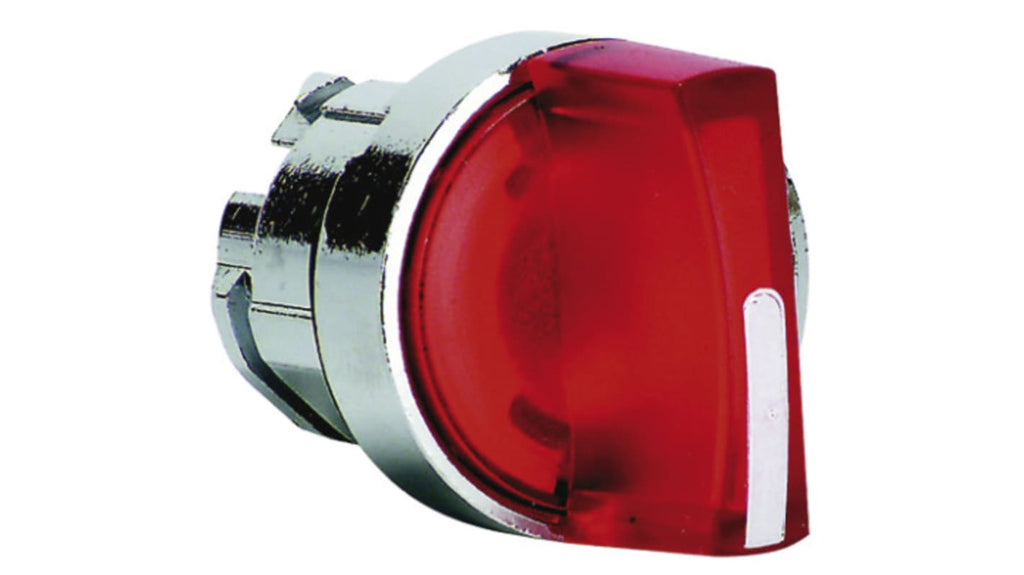 Teste selettori a 3 posizioni, diametro foro 22mm, impugnatura standard, ritorno a molla da destra verso il centro, LED illuminato. Colore attuatore rosso, protezione IP66, IP67, IP69, angolo di corsa 45 gradi. Marchio Schneider Electric, serie Harmony XB4. Codice costruttore ZB4BK1843.