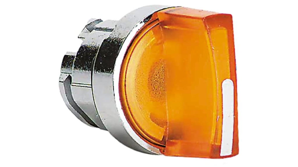 Teste selettori a 3 posizioni, diametro foro 22mm, impugnatura standard, ritorno a molla da destra verso il centro, LED illuminato. Colore attuatore arancione, protezione IP66, IP67, IP69, angolo di corsa 45 gradi. Prodotto della serie Harmony XB4, codice costruttore ZB4BK1853, marchio Schneider Electric.