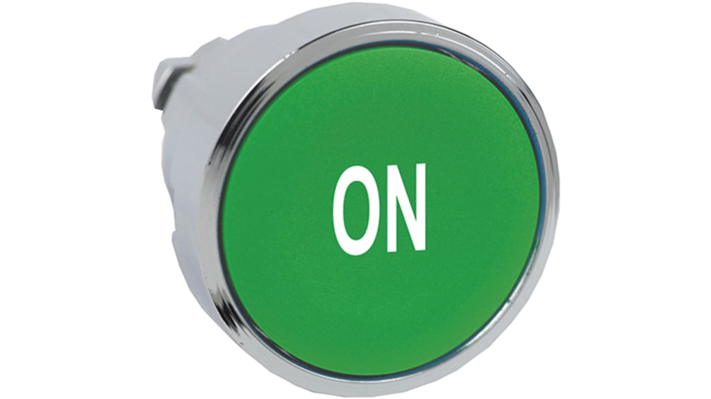 Pulsante tipo instabile, diametro foro 22 mm, colore verde, attuazione a pulsante, rotondo, materiale in metallo cromato, grado di protezione IP66. Prodotto della serie XB4 di Schneider Electric, codice costruttore ZB4BP383.