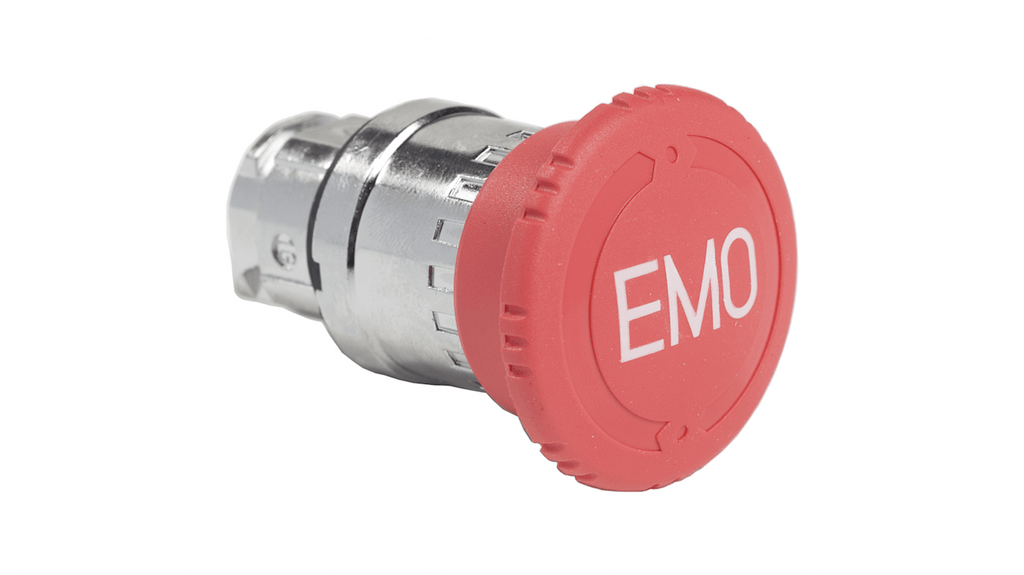 Pulsante di arresto di emergenza montaggio a pannello, diametro 22mm, attuazione a pulsante, rilascio a rotazione, illuminato. Serie ZB4-B di Schneider Electric, montaggio a scatto con fissaggio a vite. Conforme a EN/IEC 60204-1, EN/ISO e direttiva macchine 2006/42/CE. Prodotto Green Premium, privo di mercurio, garanzia 18 mesi.