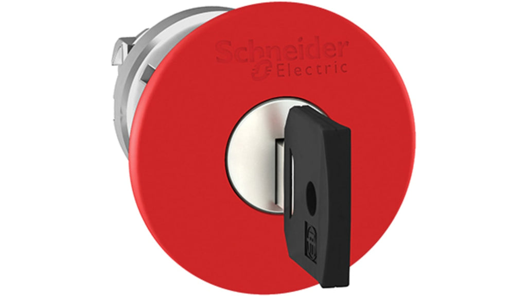 Pulsante di arresto di emergenza montaggio a pannello, diametro 22 mm, modello Schneider Electric Harmony XB4. Attuazione a pulsante, rilascio a chiave, senza illuminazione. Materiale in metallo cromato, grado di protezione IP66. Codice costruttore ZB4BS94420.