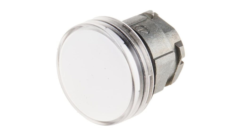 Spia luminosa LED montaggio a pannello, serie Harmony XB4, Schneider Electric. Colore bianco, diametro foro 22 mm, forma rotonda, materiale metallico. Grado di protezione IP66, IP67, IP69K. Resistente a temperature da -40 a +70 gradi Celsius. Dimensioni 29 x 29 x 30 mm. Installazione rapida con collare di fissaggio. Adatta per ambienti industriali e applicazioni generali.