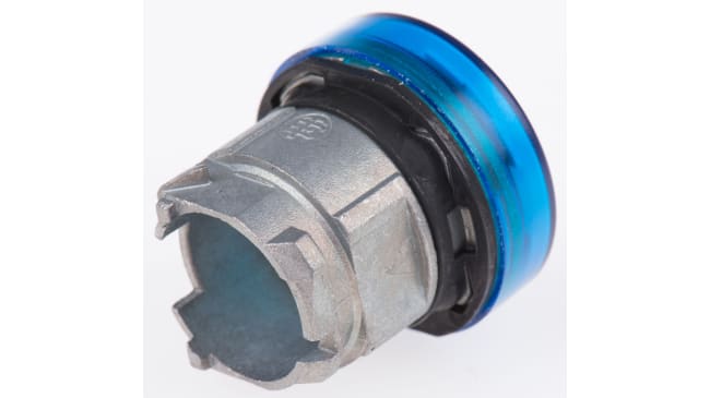 Spia luminosa LED montaggio a pannello, serie Harmony XB4, colore blu, diametro foro 22 mm, forma rotonda, materiale metallico, grado di protezione IP66, IP67, IP69K, resistente agli urti fino a 50 g, dimensioni 29 x 29 x 30 mm, peso 26 g, compatibile con corpi di contatto e kit di montaggio a filo. Adatta per ambienti industriali e applicazioni impegnative.