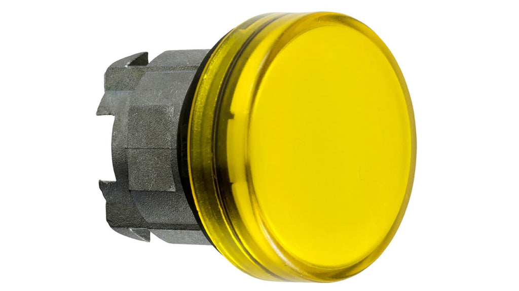 Spia LED montaggio a pannello, serie Harmony XB4, diametro foro 22mm, colore giallo, forma rotonda, materiale plastico, grado di protezione IP66, compatibile con corpi LED integrati, neon o LED, richiede corpo/collare di fissaggio e corpi del contatto, applicazioni in ambito industriale, chimico, alimentare, automobilistico e marino. Codice costruttore ZB4BV083S, marchio Schneider Electric.