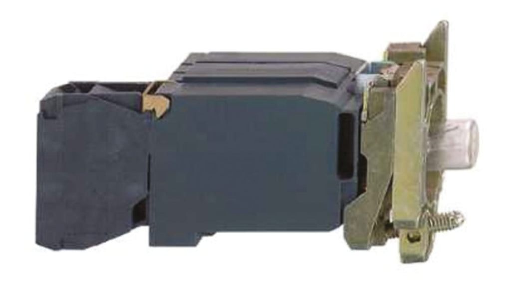 Blocco contatti e segnalazione Schneider Electric, 1 N/A, 230 V c.a., terminali a vite. Corpo e contatti per lampadine a incandescenza con raccordo BA9s, collegamenti a morsetto a vite, alimentazione tramite trasformatore integrato 1,2 VA, secondaria 6 V, corrente nominale 10 A, serie Harmony XB4, collare di fissaggio incluso.