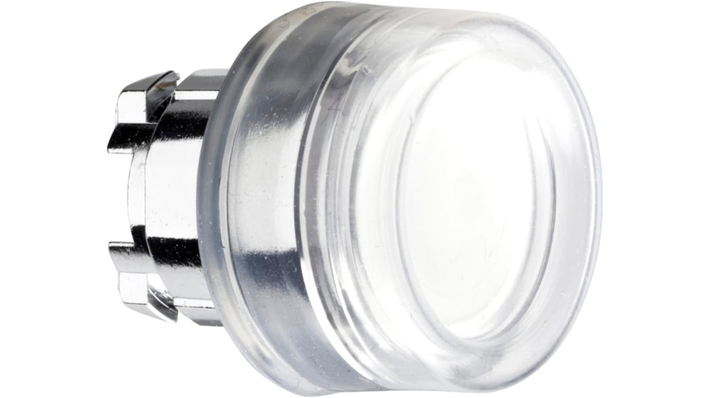 Attuatore pulsante tipo Ritorno a molla, Bianco, serie Harmony XB4. Diametro foro 22mm, diametro pulsante 28.5mm, materiale metallo, illuminato, protezione IP66 e IP67. Minima temperatura operativa -40°C, massima temperatura operativa +70°C. Tipo terminale morsetto a vite. Richiede collare di fissaggio, LED integrato e gruppo di contatto. Adatto per pannelli di controllo e automazione industriale.