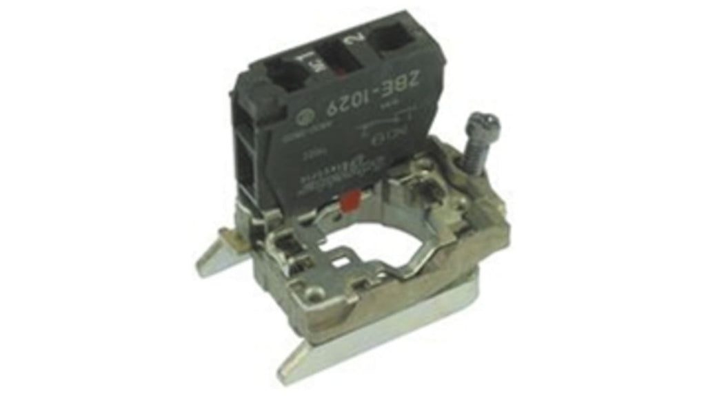 Blocco contatti per pulsante, serie Harmony XB4, Schneider Electric. Connettori terminal a vite, durata meccanica 5.000.000 cicli, prodotto Schneider Green Premium, 18 mesi di garanzia. Grado di protezione IP 20, conforme a EN/IEC 60947-1, 60947-5-1, UL 508, resistenza alle vibrazioni 5 gn, resistenza agli urti fino a 30/50 gn. Fornito con collare di fissaggio.