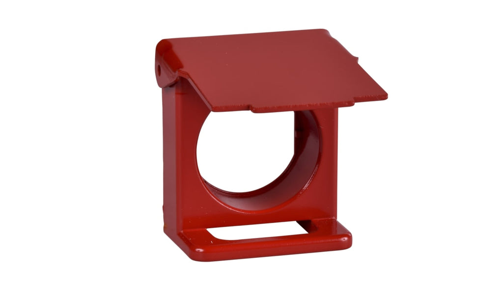Patta bloccabile con lucchetto per pulsante a filo da 22 mm. Accessorio della serie Harmony XB4 di Schneider Electric. Colore rosso. Compatibile con interruttori a pulsante ZB4. Include protezioni e kit per montaggio a filo. Progettato per garantire sicurezza e affidabilità in applicazioni industriali.