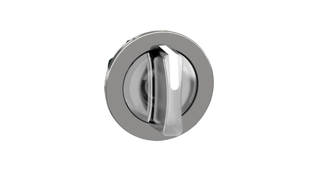 Testa del selettore illuminata a LED, bianca, 3 posizioni, ritorno a molla, diametro foro 30mm, protezione IP66, IP67, IP69, angolo di corsa 45 gradi, temperatura d'esercizio da -40 a 70 gradi, elevata resistenza alle vibrazioni, ampia gamma di accessori, vari tipi di collegamento disponibili, design modulare per flessibilità e adattabilità, kit di montaggio a filo incluso.