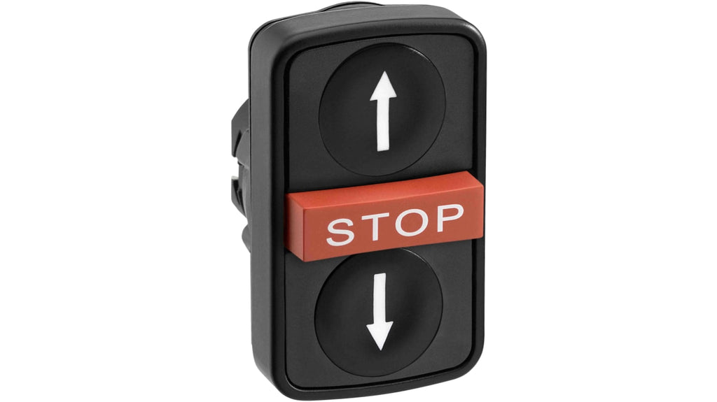 Attuatore pulsante a ritorno a molla, serie ZB5, diametro foro 22 mm, colore pulsante nero, tipo rettangolare, protezione IP66, IP67, IP69K. Progettato per applicazioni industriali, compatto, con sporgente rossa. Codice costruttore ZB5AA72124, marchio Schneider Electric.