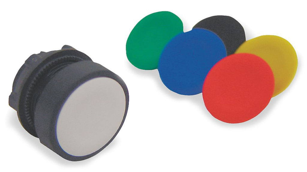 Attuatore pulsante tipo Instabile, rotondo, serie Harmony XB5. Diametro foro 22mm, diametro pulsante 28.5mm. Materiale in plastica, protezione IP66, IP67, IP69K. Progettato per cappucci di tenuta pulsante, codice costruttore ZB5AA9, marchio Schneider Electric.