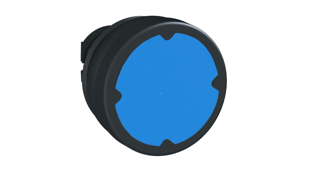 Testa a pulsante blu Schneider Electric, interfaccia ergonomica per il controllo delle macchine, facile installazione e sostituzione, diametro foratura pannello 22 mm, tipo rotondo, protezione IP66, IP67, IP69K, temperatura d'esercizio da -40 a 70 gradi Celsius, resistente agli urti, alla polvere, all'acqua e alle vibrazioni. Codice costruttore ZB5AC680, serie ZB5.