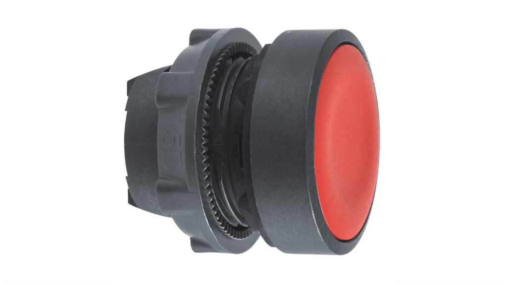 Attuatore pulsante tipo Mantenuto, diametro foro 22mm, colore rosso, tipo rotondo, materiale plastica, protezione IP66, IP67, IP69K, temperatura operativa da -40 a +70 gradi Celsius, tipo terminale morsetto a vite, compatibile con corpi in plastica Harmony XB5, conforme agli standard IEC e JIS, autorizzato UL e CSA.