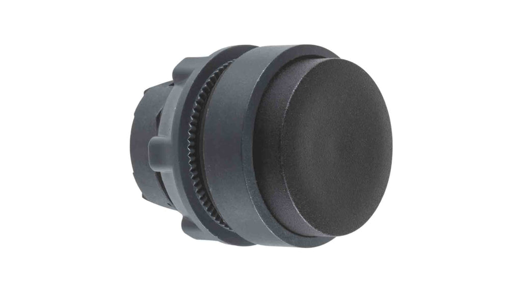 Attuatore pulsante tipo Ritorno a molla, testa sporgente nera, progettato per applicazioni industriali. Serie ZB5, diametro foro 22 mm, attuazione a pulsante, tipo rotondo. Grado di protezione IP66, IP67, IP69K. Marchio Schneider Electric, codice costruttore ZB5AH2. Compatto e senza contrassegno.