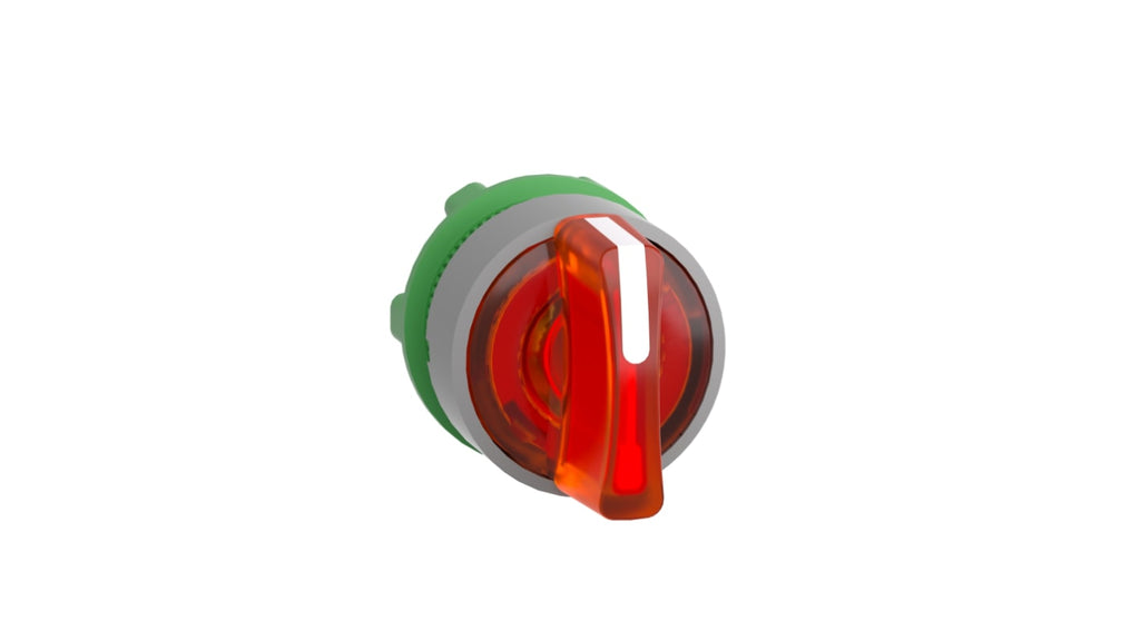 Testa di interruttore illuminata per selettore Schneider Electric, 3 posizioni, diametro foro 22mm, tipo attuatore manico, colore arancione, resistente a urti, polvere, acqua e vibrazioni, temperatura d'esercizio da -40 a 70 gradi Celsius, compatibile con serie Harmony XB5, installazione semplice su unità di interruttore selettore.