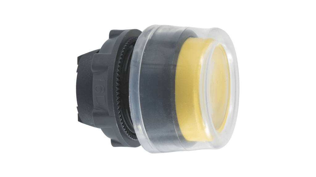 Attuatore pulsante tipo Ritorno a molla, diametro foro 22mm, colore giallo, tipo rotondo, materiale plastica, protezione IP66 e IP67, temperatura operativa da -40°C a +70°C, morsetto a vite, compatibile con corpi in plastica Harmony XB5, conforme agli standard IEC e JIS, autorizzato UL e CSA.