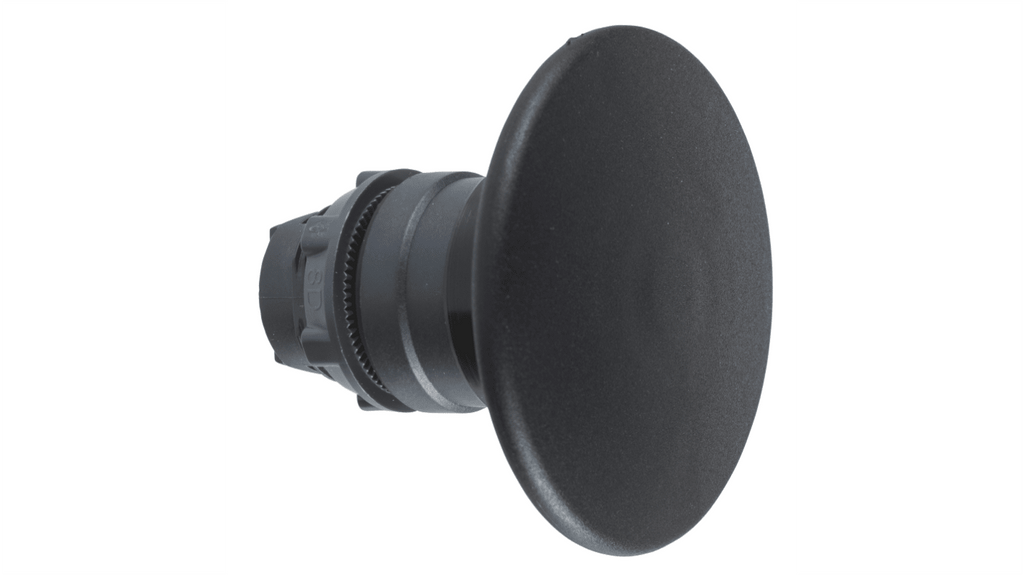 Attuatore pulsante tipo Instabile, testa a fungo, ritorno a molla, diametro foro 22 mm, colore nero, attuazione a pulsante, tipo rotondo, materiale plastica, protezione IP66, IP67, IP69K, standard IEC, JIS, autorizzatori UL, CSA. Marchio Schneider Electric, serie Harmony XB5. Codice costruttore ZB5AR2.