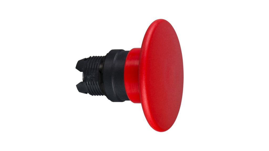 Attuatore pulsante tipo Ritorno a molla, testa a fungo, diametro 60 mm, montaggio 22 mm, colore rosso, non illuminato, meccanismo di ritorno a molla, durata meccanica 5.000.000 cicli, resistenza agli urti e alle vibrazioni, grado di protezione IP66, IP67, IP69 e IP69K, conforme RoHS, realizzato in plastica.