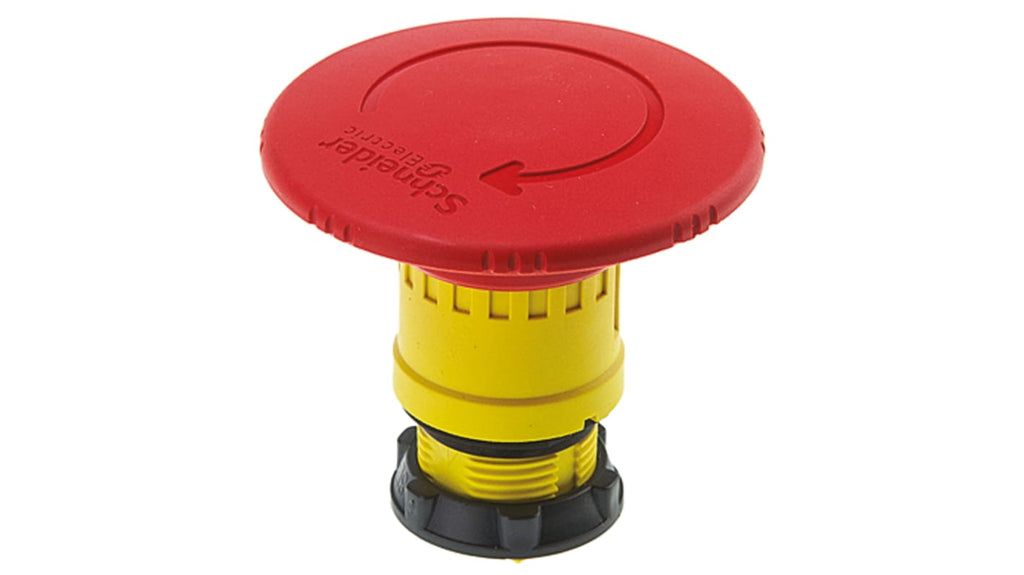 Pulsante di arresto di emergenza montaggio a pannello, diametro 22mm, attivazione a scatto, rilascio a rotazione, materiale plastico, non illuminato. Prodotto conforme agli standard IEC e ISO per applicazioni di arresto d'emergenza. Serie Harmony ZB5, codice costruttore ZB5AS864, marchio Schneider Electric.