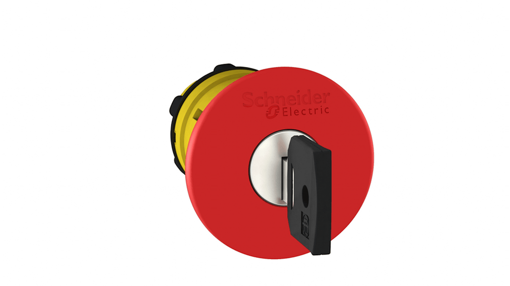 Pulsante di arresto di emergenza con grilletto e sblocco a chiave, diametro di montaggio 22 mm, forma rotonda, colore rosso. Realizzato in plastica grigio scuro, grado di protezione IP66, IP67, IP69 e NEMA 4X. Prodotto Green Premium, privo di mercurio, conforme alla normativa RoHS. Serie Harmony XB5, attuazione a pulsante ad aggancio.