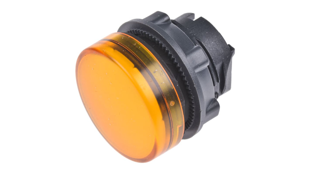 Spia luminosa arancione per montaggio a pannello, serie Harmony XB5, codice ZB5AV053, diametro foro 22 mm, forma rotonda, materiale plastica, grado di protezione IP69K, resistenza a urti e vibrazioni, temperatura operativa da -40 a +70 gradi Celsius, compatibile con corpi luminosi a LED serie ZB5-AV, autorizzazioni UL, CSA, CE, NEMA, standard IEC, JIS.